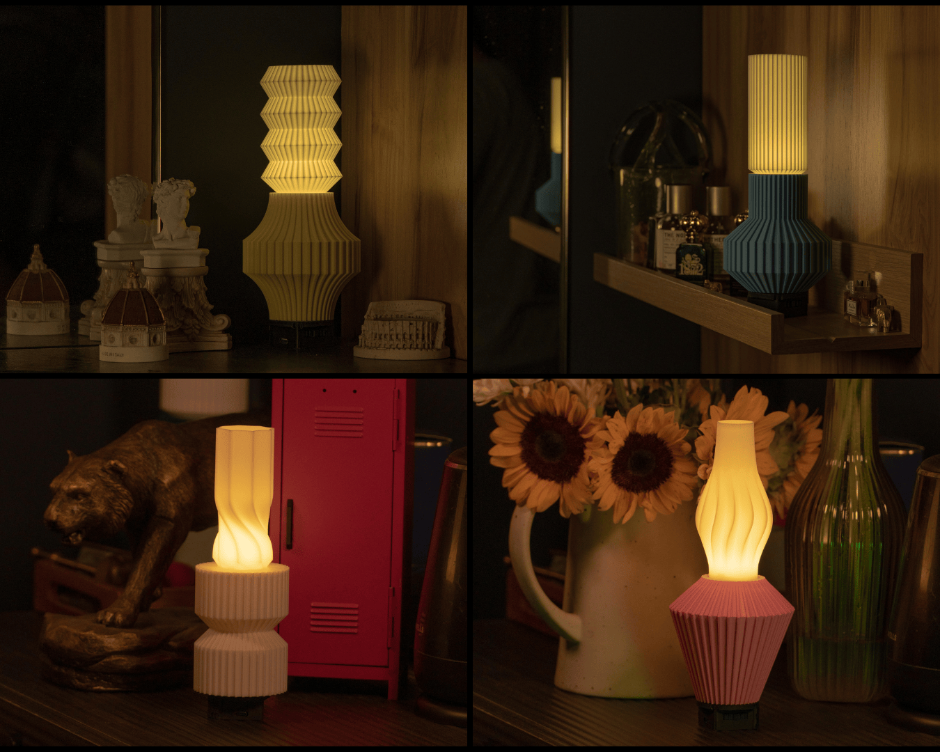 - Lampshades : designed for mood, material play, and easy swaps.